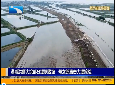 5G连线:洪湖洪狮大垸部堤坝脱坡 帮女郎直击大堤抢险