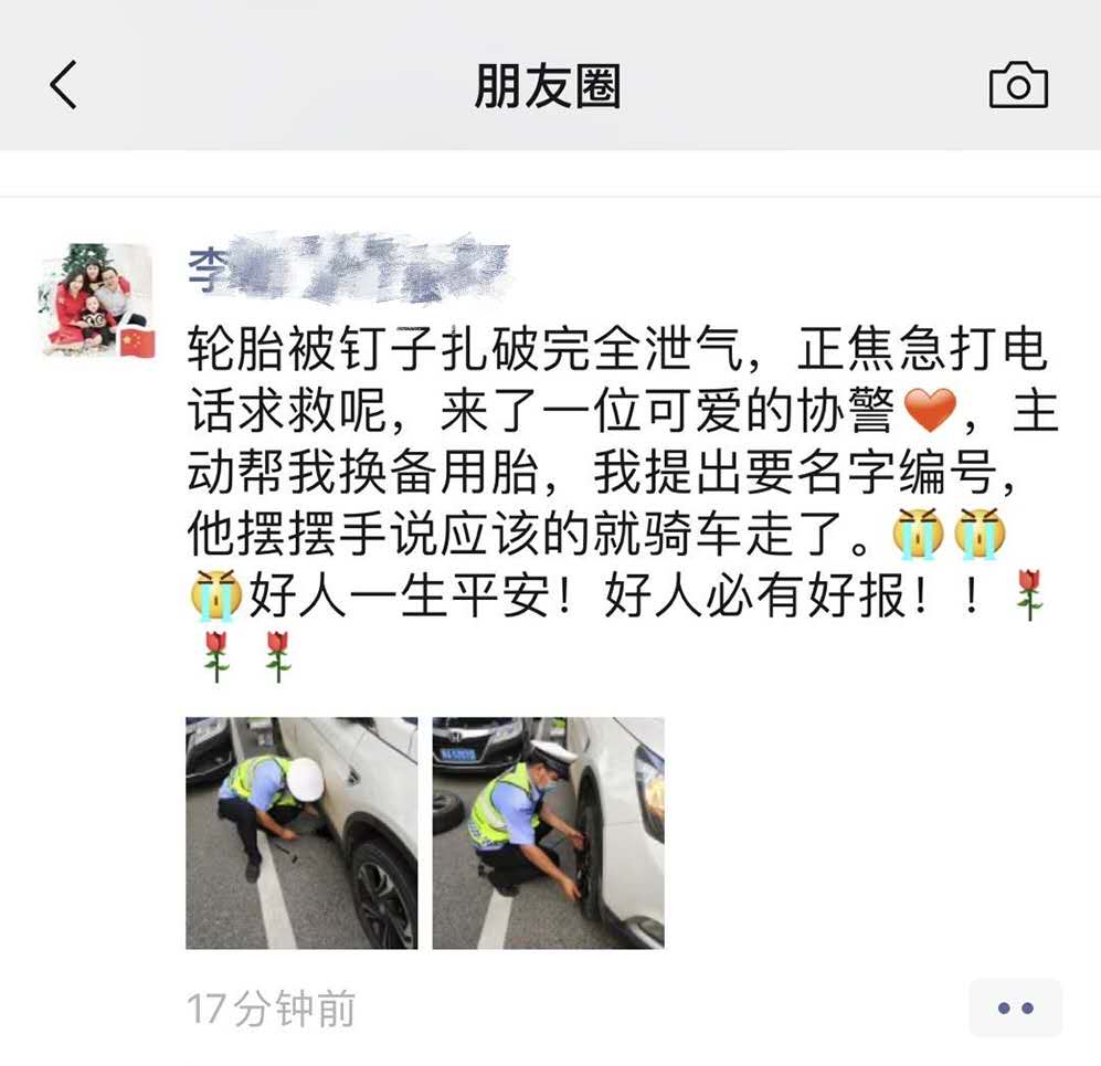做好事不留名的交警蜀黍被朋友圈“曝光”了