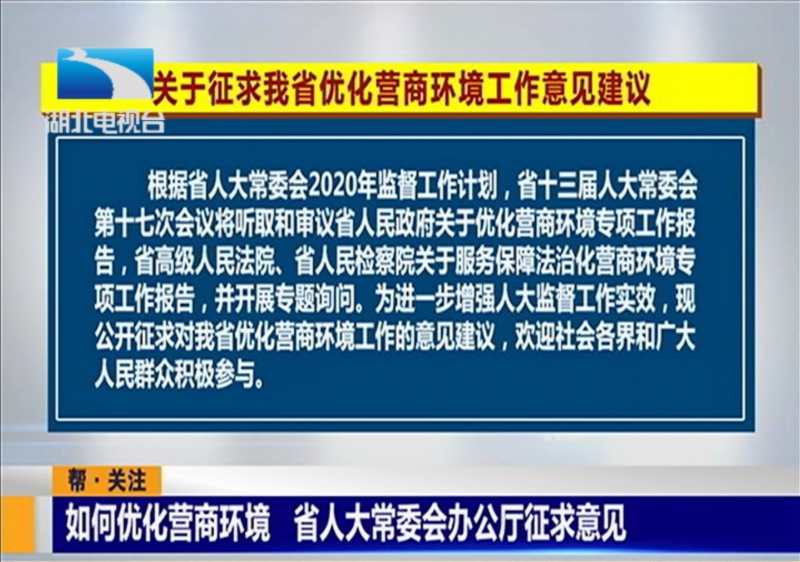 如何优化营商环境 湖北省人大常委会办公厅征求意见