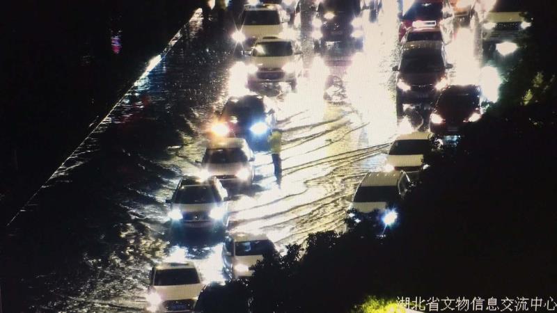 突降暴雨 交警水中指挥交通 充当马路“航标”
