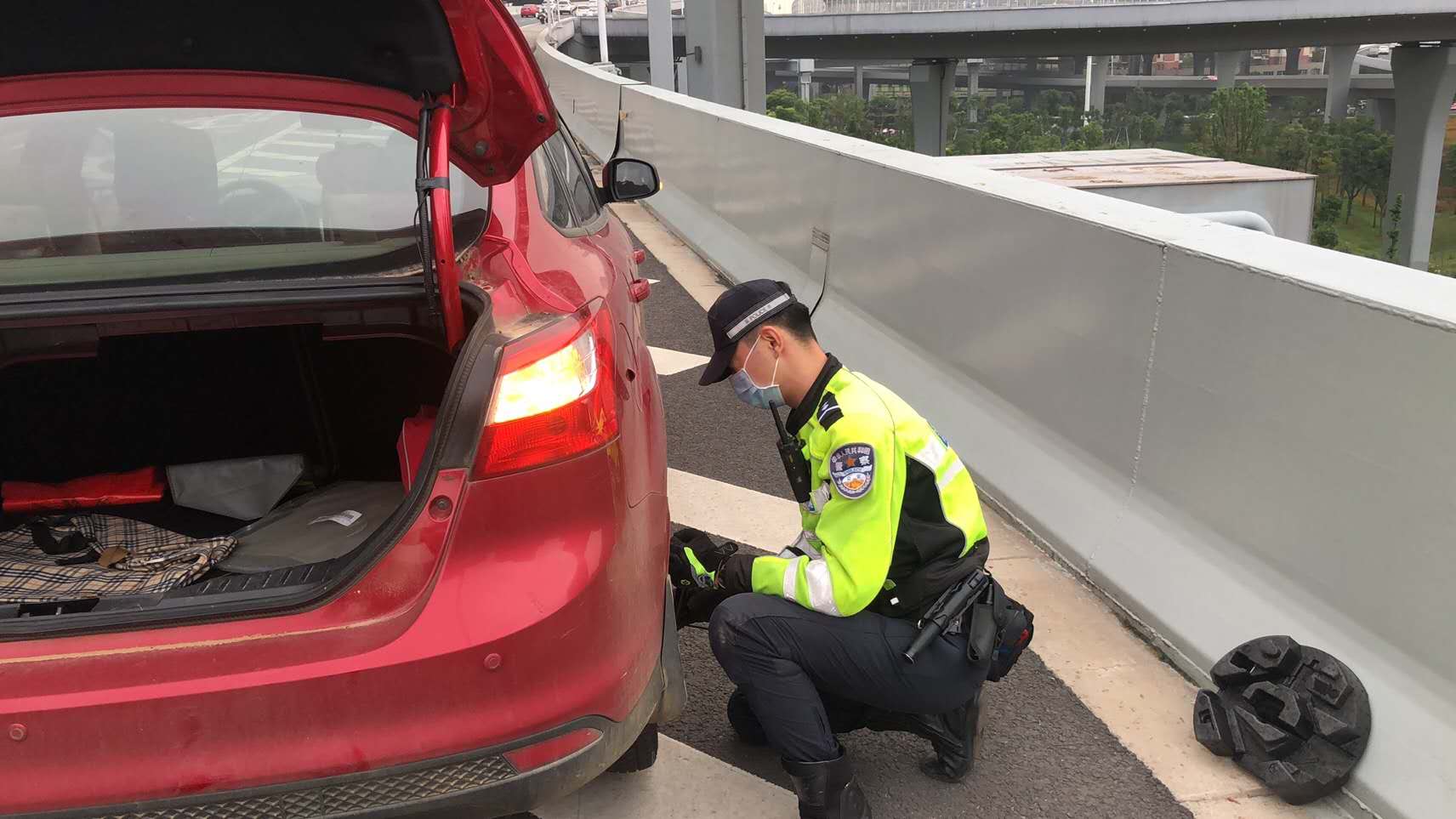 上班途中车爆胎急坏女司机,交警10分钟解决问题