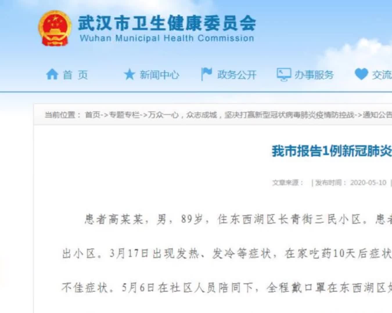 针对武汉新增新冠肺炎确诊病例1例的具体情况,武汉市卫生健康委今天中午公布该病例的详细情况。