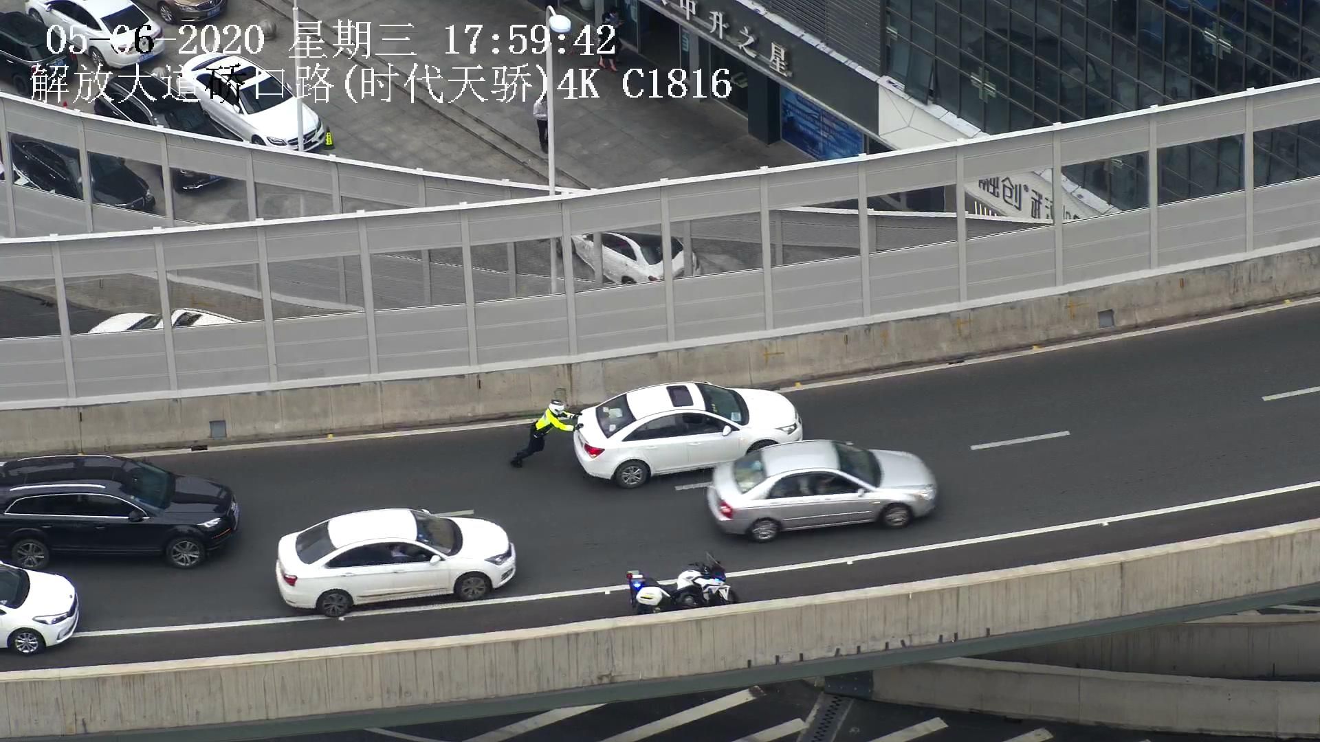 晚高峰遭遇“抛锚”车 汉警快骑速来解困