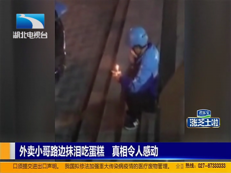 武汉外卖小哥蹲路边吃蛋糕 泣不成声