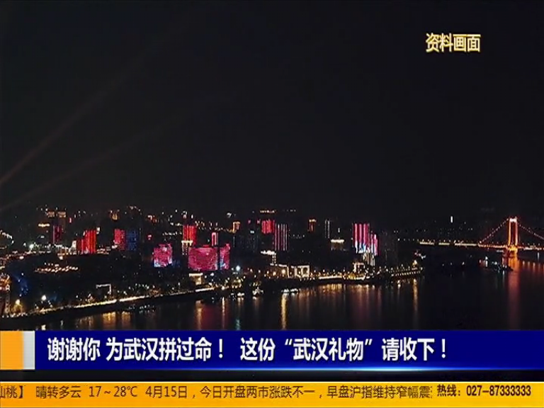 抗击疫情战斗打响以来,这段时间里,每到夜晚,“武汉加油”、“中国加油”“致敬抗疫英雄”这样的灯光字样都会在武汉一些建筑物墙面上亮起,这些璀璨的“光芒”照亮着这座城市的璀璨的“光芒”,鼓舞着市民的希望。4月14日武汉市开始,全新的特别策划正式上演。一起来看。