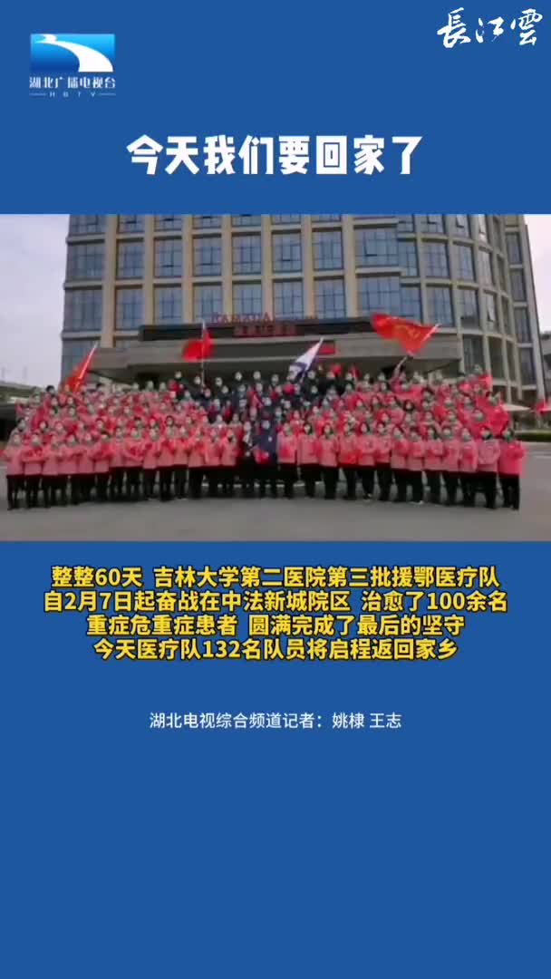 整整60天!吉林大学第二医院第三批援鄂医疗队自2月7日起奋战在同济医院中法新城院区,治愈了100余名重症危重症患者,圆满完成了最后的坚守!今天,医疗队132名队员将启程返回家乡!(湖北电视综合频道制作)