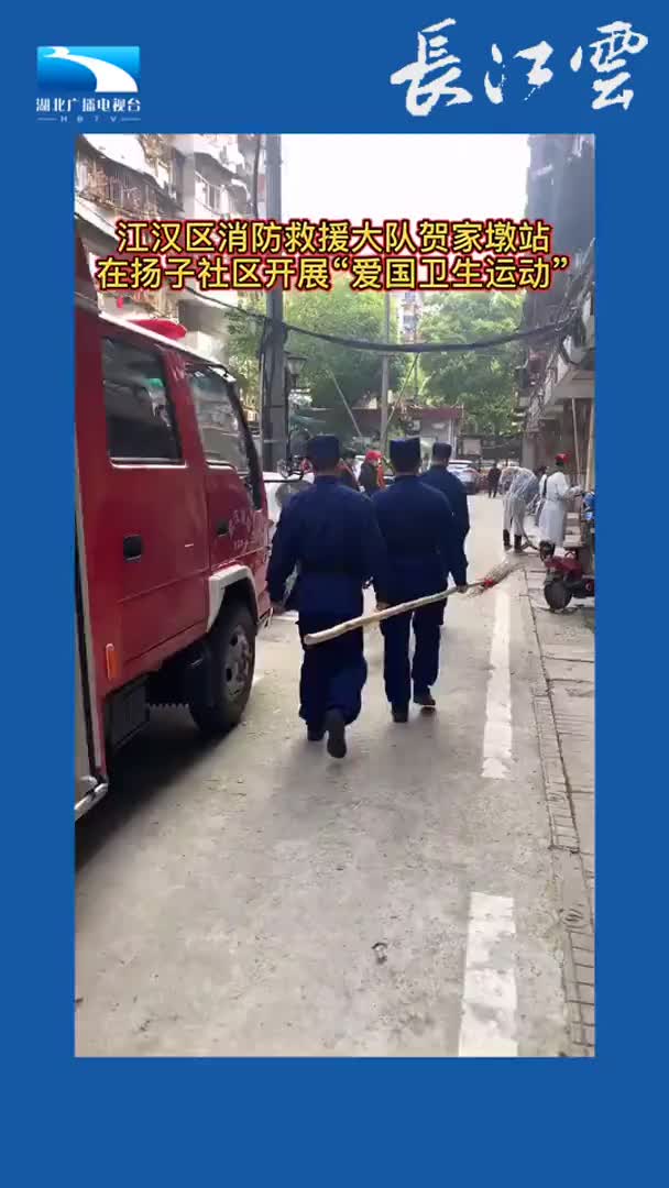 江汉区消防救援大队贺家墩站,在扬子社区开展“爱国卫生运动”