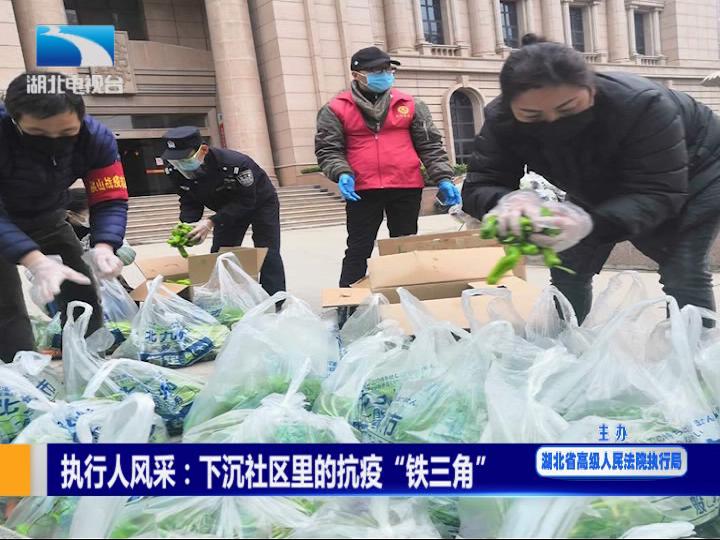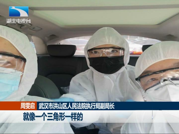 在武汉市洪山区光霞社区,三名执行干警下沉社区,服务防疫工作。50多天里,他们入户筛查、送菜送药、运转病人,被称为社区里的“铁三角”。(湖北电视综合频道 制作)