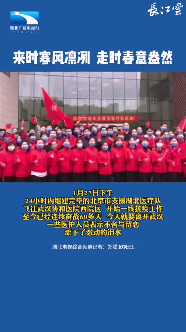 1月27号也就是大年初三,24小时内组建完毕的北京援鄂医疗队飞往武汉协和医院西院区,开始一线抗疫工作,截止到昨天,他们已经连续奋战60多天。3月31日上午,全体队员离汉返京。(记者:郑聪 欧阳珏)湖北电视综合频道 制作