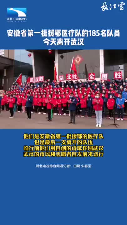 安徽省第一批援鄂医疗队的185名队员今天离开武汉