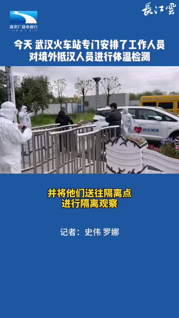 在武汉火车站,有专人对境外抵汉人员量体温,并将他们送往隔离点