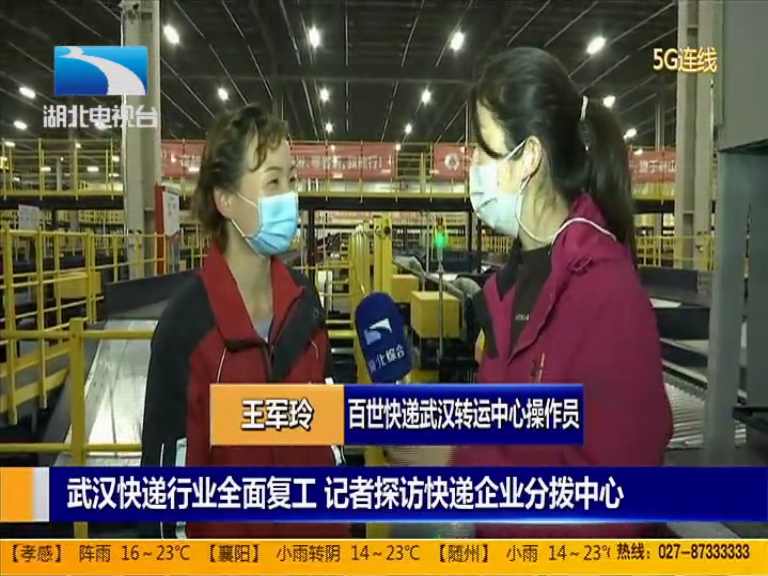 据湖北省邮政管理部门介绍,3月20日起,武汉市各快递企业将逐步全面复工,力争3月底前达到60%复工进度,4月中旬超过90%。目前快递企业恢复寄递服务的情况如何?武汉市民网购的东西什么时候能送到手上呢?我们来连线正在百世汇通快起的武汉分拨中心孙瑶,一起了解复工的情况。