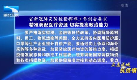 V视 | 湖北省新冠肺炎防控指挥部工作例会要求 精准调配医疗资源 切实提高救治能力