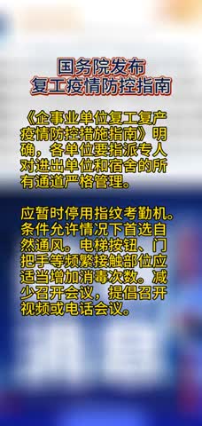 速看!国务院发布企事业单位复工复产疫情防控措施指南