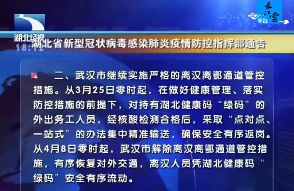 V视 | 3月25日零时起 武汉市以外地区解除离鄂通道管控