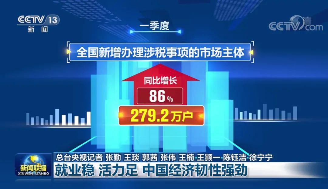 新闻联播:今年一季度就业稳活力足!全国新增涉税市场主体279.2万户
