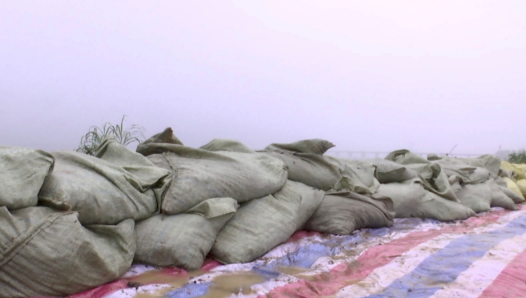 斧头湖支流水位上涨 咸宁市咸安区筑起十公里子堤