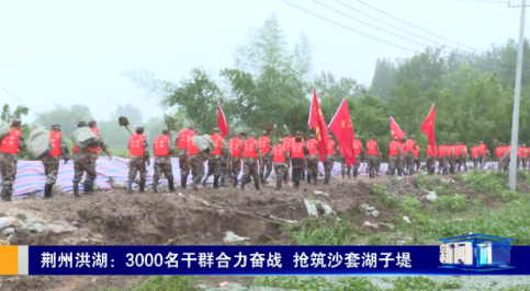 荆州洪湖:3000名干群合力奋战 抢筑沙套湖子堤