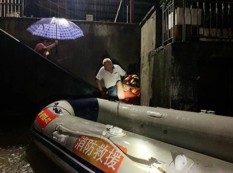 咸宁:暴雨来袭致城区内涝 消防紧急疏散转移被困群众65人