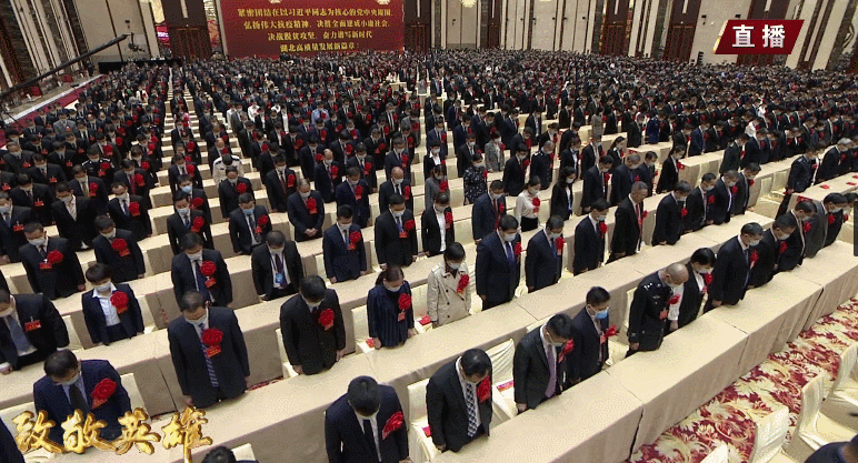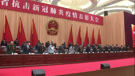 湖北省抗击新冠肺炎疫情表彰大会全体参会代表向遇难同胞默哀