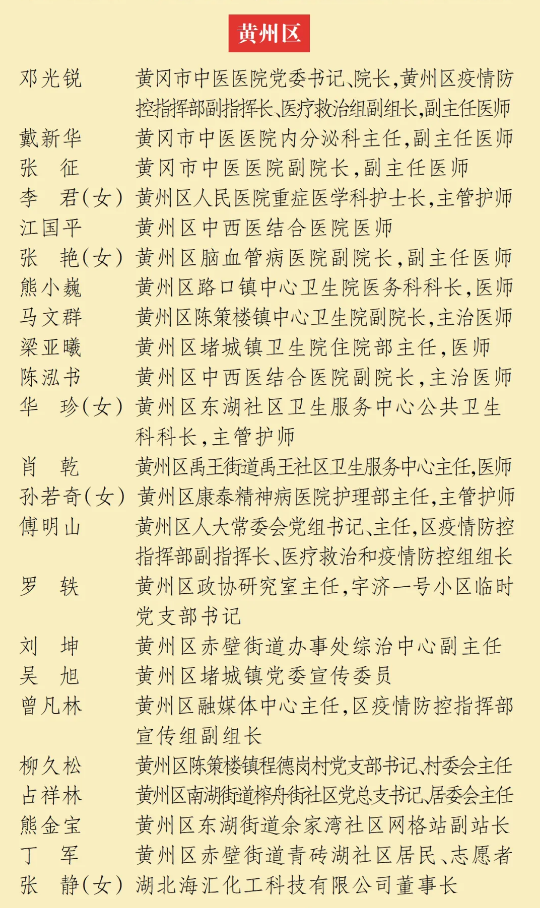 点赞!黄州这些个人和集体获黄冈抗疫表彰!