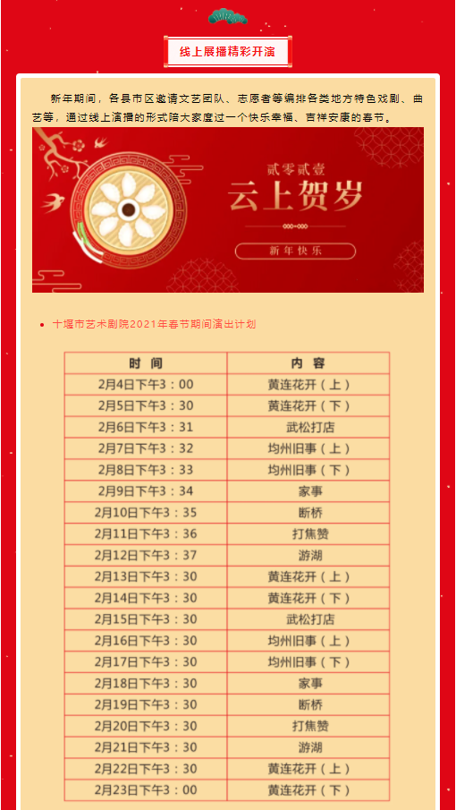 云上贺岁!十堰过年期间最全文化大餐来啦!