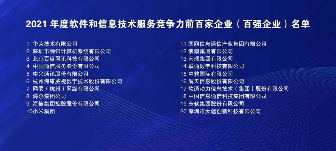 我省四家企业入选2021年度软件和信息技术服务企业竞争力百强榜单
