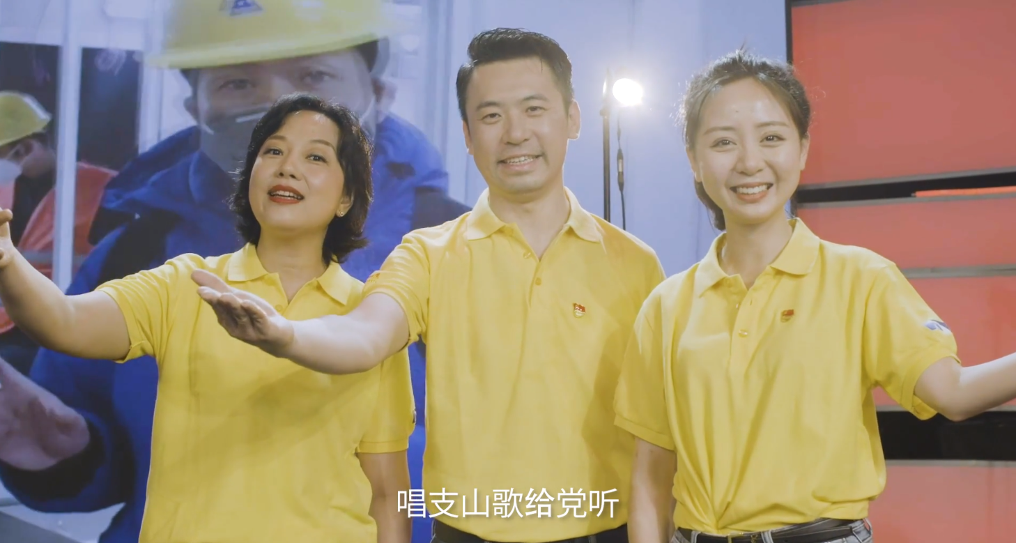 融媒体新闻中心主持人贾颖、李潇谧、曹刚演唱《唱支山歌给党听》