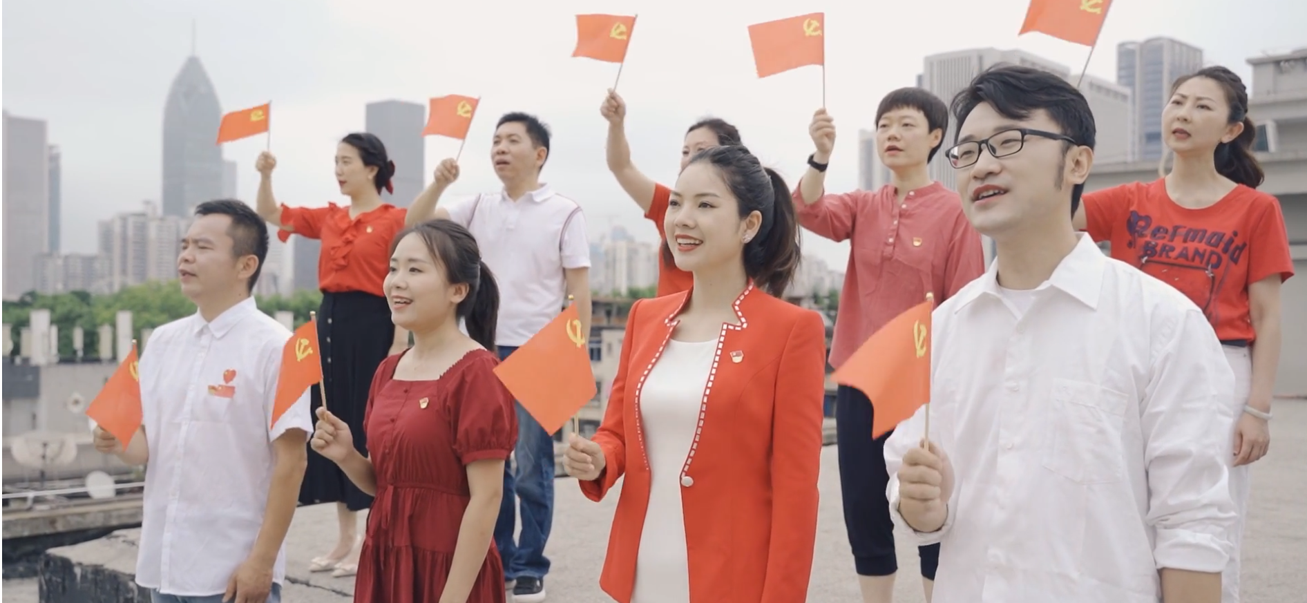 湖北经视事业部主持人江霞等人演唱《唱支山歌给党听》