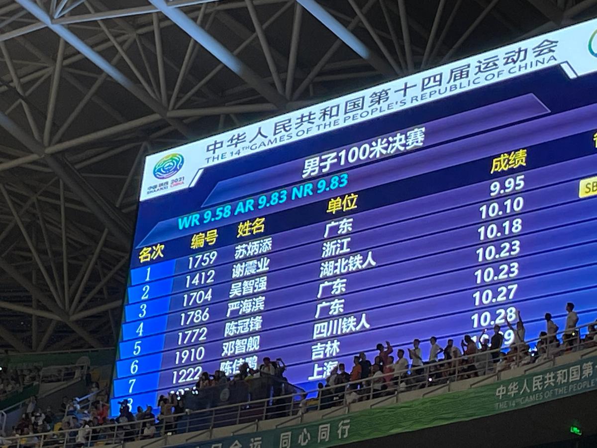 全运会百米飞人大战,苏炳添9秒95夺冠!