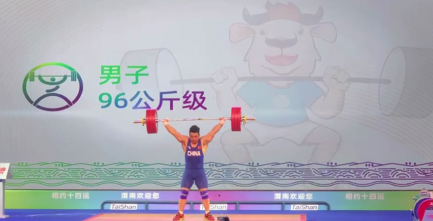全运会举重 湖北名将田涛夺得男子96公斤级冠军