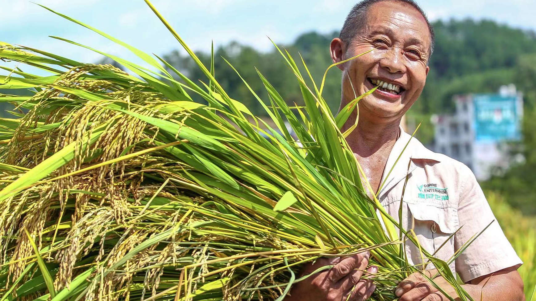 近日,湖北省恩施州来凤县三胡乡安子堡村的近千亩制种水稻迎来丰收,趁着晴好天气,种植户们正在加紧抢收。(摄影:张杏)