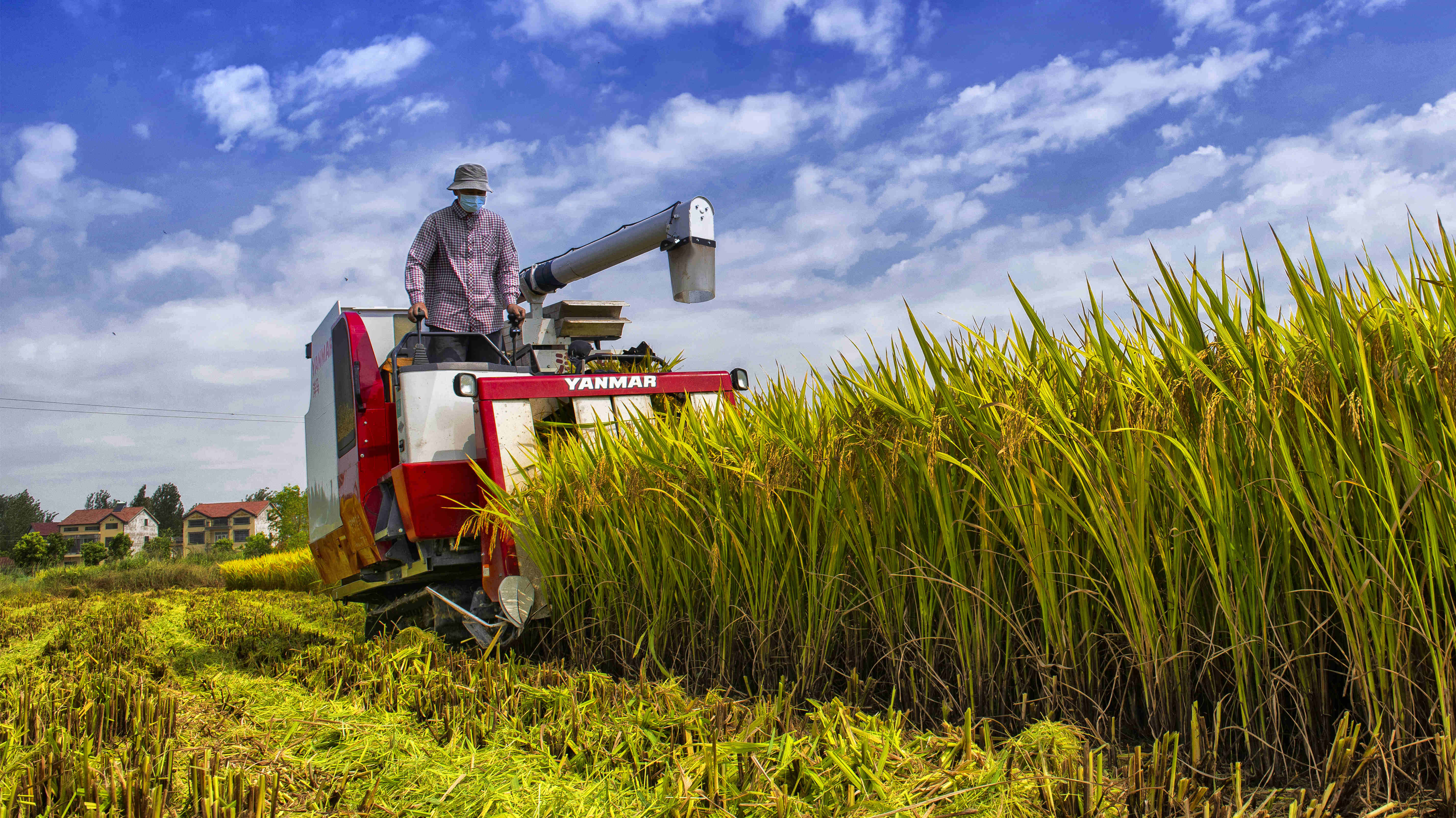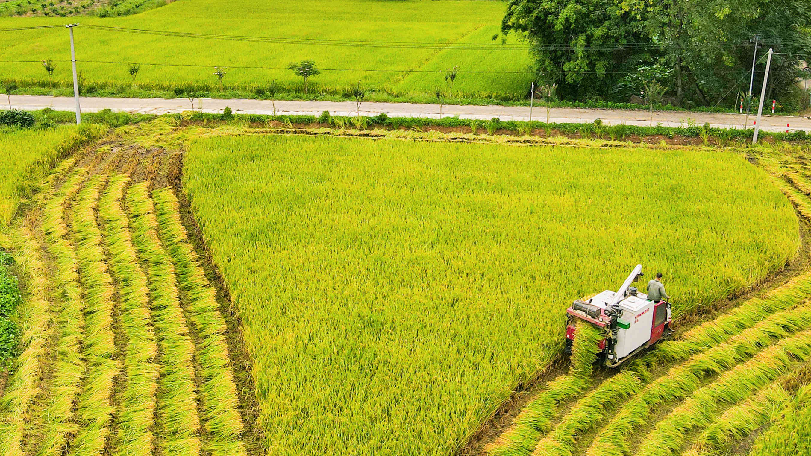 九月上旬,枝江市中稻陆续进入了收获季,种粮农户正抢抓时机收割稻谷,机器轰鸣,处处是一片丰收的景象。(摄影:陈黄奎)