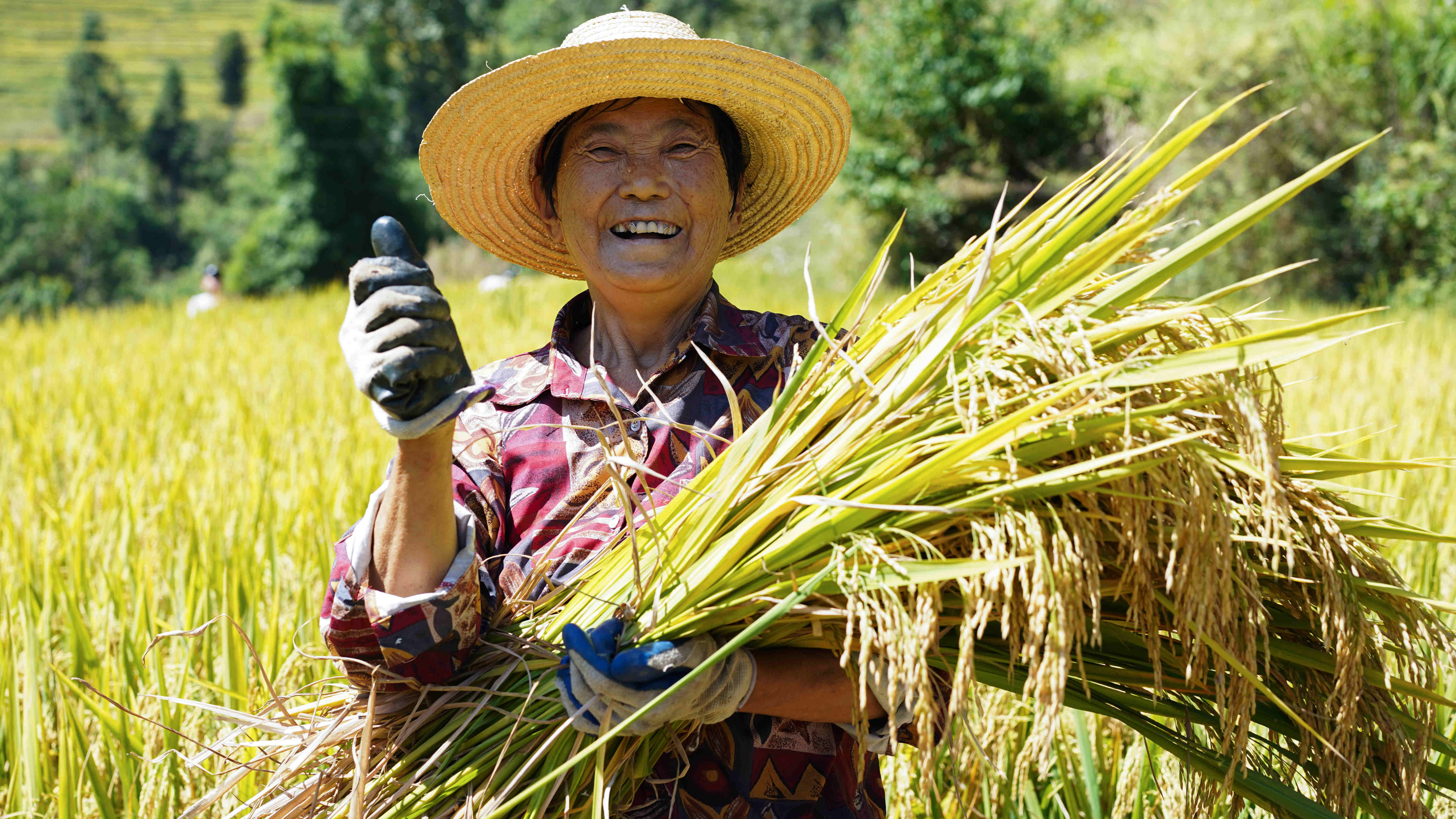 9月13日,在巴东县东瀼口镇牛洞坪村,一片片稻谷进入收获期,田间地头,尽是农民忙碌的身影。(摄影:巴东县融媒体中心 王嫣然)