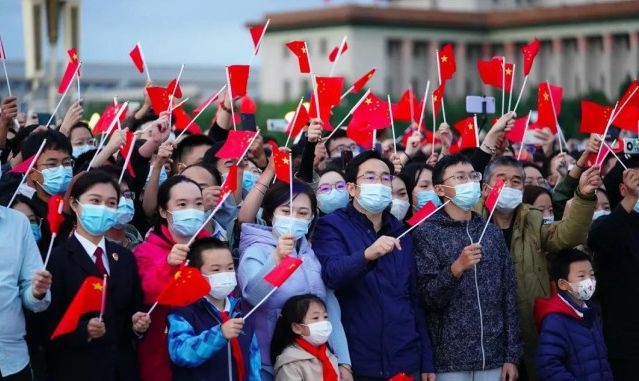 数万人天安门广场观升旗,人群欢呼“我爱你中国!”
