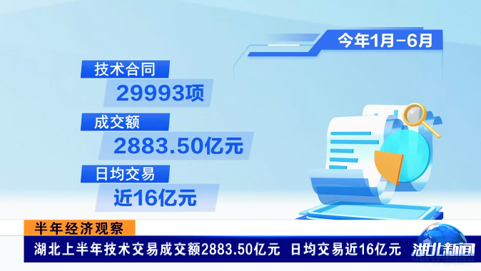湖北上半年技术交易成交额2883.50亿元 日均交易近16亿元