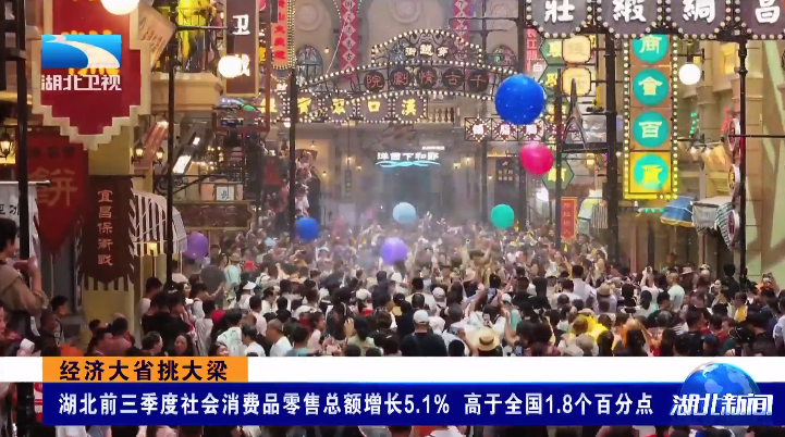 湖北前三季度社会消费品零售总额增长5.1% 高于全国1.8个百分点