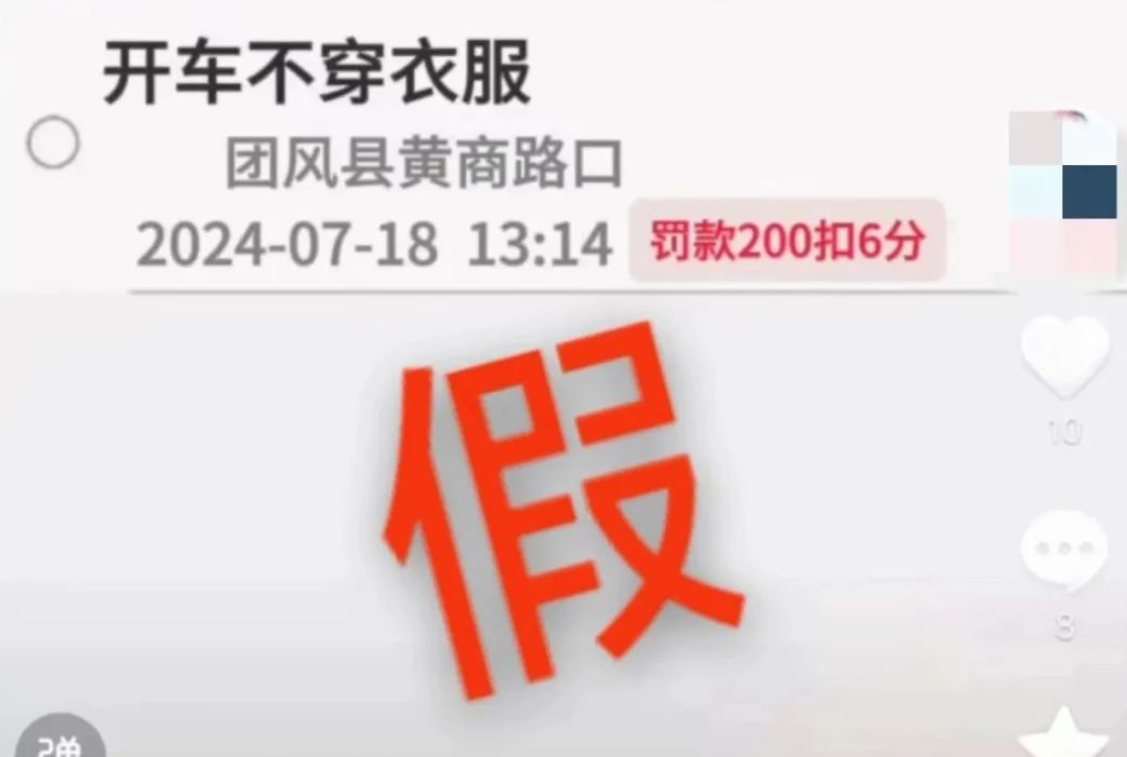 《“开车不穿衣服”被罚200元扣6分?团风警方:假的!》