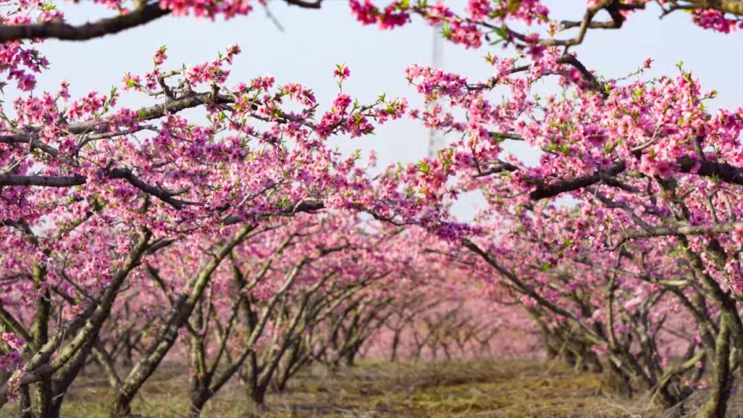 湖北赤壁:百亩桃花绘春色 千枝粉蕊映霞光